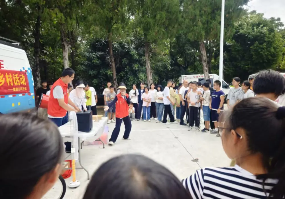 科普实验环节将活动氛围推向高潮。“会变色的花”实验,利用酸碱指示剂与不同溶液反应呈现出的颜色变化,让同学们直观地感受到化学世界的奇妙;“空气炮”实验则通过简单的材料制作出能发射“空气炮弹”的装置,展示了空气压强的力量,引得同学们纷纷动手尝试制作,现场欢声笑语不断。科普队员们还组织了科普知识竞赛,围绕当天展示的科普内容设置题目,同学们积极抢答,在竞争中巩固所学的科学知识 。