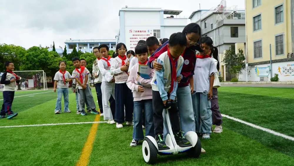 活动当日,阳光洒满校园,科普大篷车刚驶入学校,便吸引了众多师生的目光。在科普展具展示区,漾濞县科协带来的平衡车和机器狗周围围满了好奇的学生。科普队员现场演示平衡车的操作技巧,讲解其利用陀螺仪和加速度传感器实现平衡的原理,学生们纷纷排队体验,在亲身操作中感受物理力学的奇妙。机器狗的精彩表演将现场气氛推向高潮,它灵活地做出各种动作,科普队员结合演示,深入浅出地介绍人工智能、机械传动等相关知识,激发了学生们对智能科技的浓厚兴趣 。