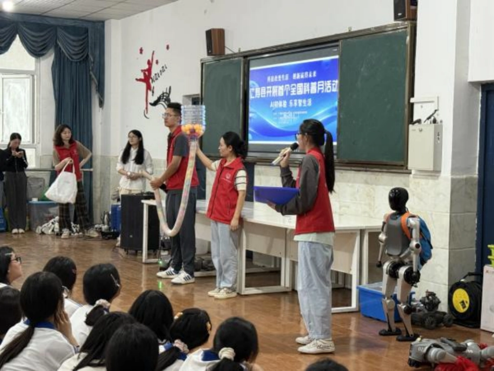 科技发展,是一部人类以智慧与勇气书写的壮丽史诗,是一段将不可能变为可能的非凡旅程。它并非冰冷的技术堆砌,而是一种深刻改变世界面貌、重塑人类生活方式的磅礴力量。2025年9月16日上午,仁寿县科学技术协会、仁寿县教育和体育局联合仁寿县宝马小学开展的仁寿县首个全国科普月活动,为全校350余名同学送去了充满科技感的礼物。