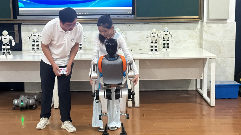 科普志愿队的老师们为孩子们呈现了精彩的科普实验,涵盖 “机器人舞蹈” 展示、人形机器人运动会自由体操冠军“小顽童” 表演以及 “液氮爆炸” 等项目,全方位地展现了科技的魅力。在互动体验环节,同学们都积极参与,深入理解了诸多实用的科学知识。让学生亲身体验科学探究的完整过程,加深他们对科学知识的理解,更能培养他们尊重事实、勇于质疑、追求真理的科学精神和理性思维。