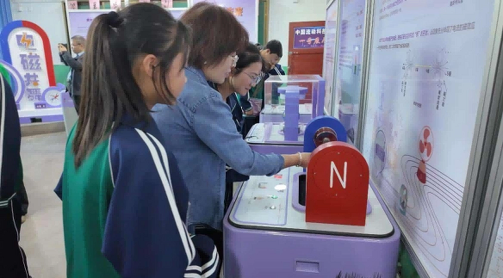 在 “特斯拉线圈” 展品前,讲解员边演示边讲解:“大家看到的紫色电弧,其实是高压电击穿空气产生的,就像雷雨天气的闪电,不过这个是安全可控的,它能让我们直观看到电的‘模样’”,生动的表述让围拢的同学频频点头,不少原本只是观望的学生也主动加入体验行列,讲解员与同学间的互动让科普氛围愈发浓厚。
