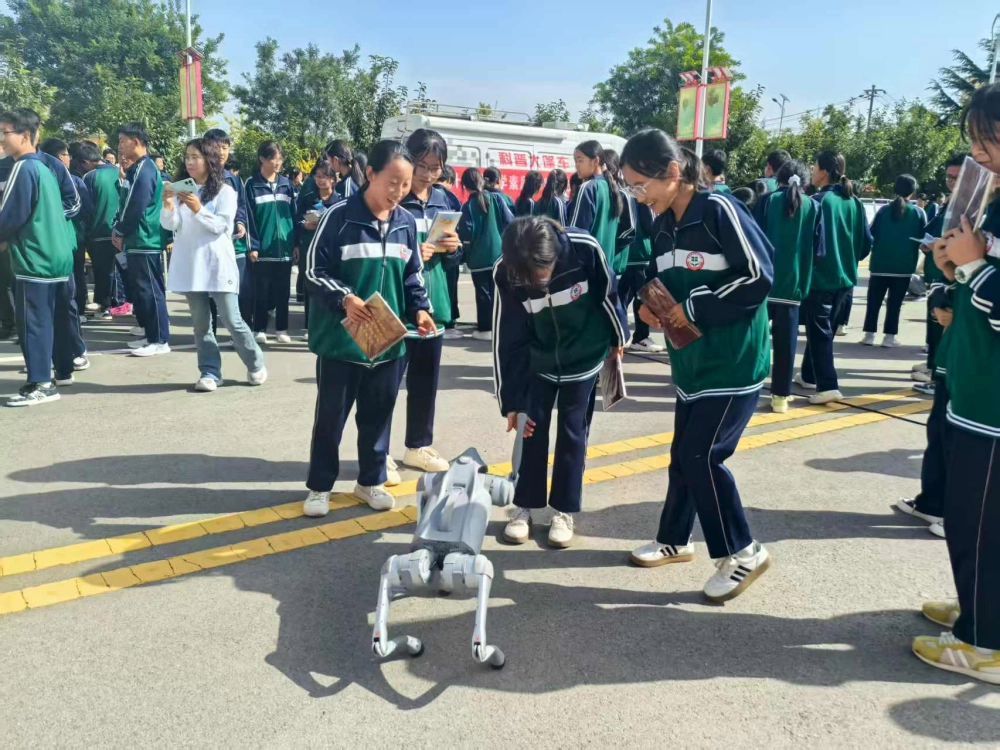 启动仪式后,与会领导和学校师生观看了州县市科普大篷车车载展品演示,到中国流动科技馆展厅实地参观和体验了展品。市科协工作人员向同学们展示了机器人和机器狗表演。