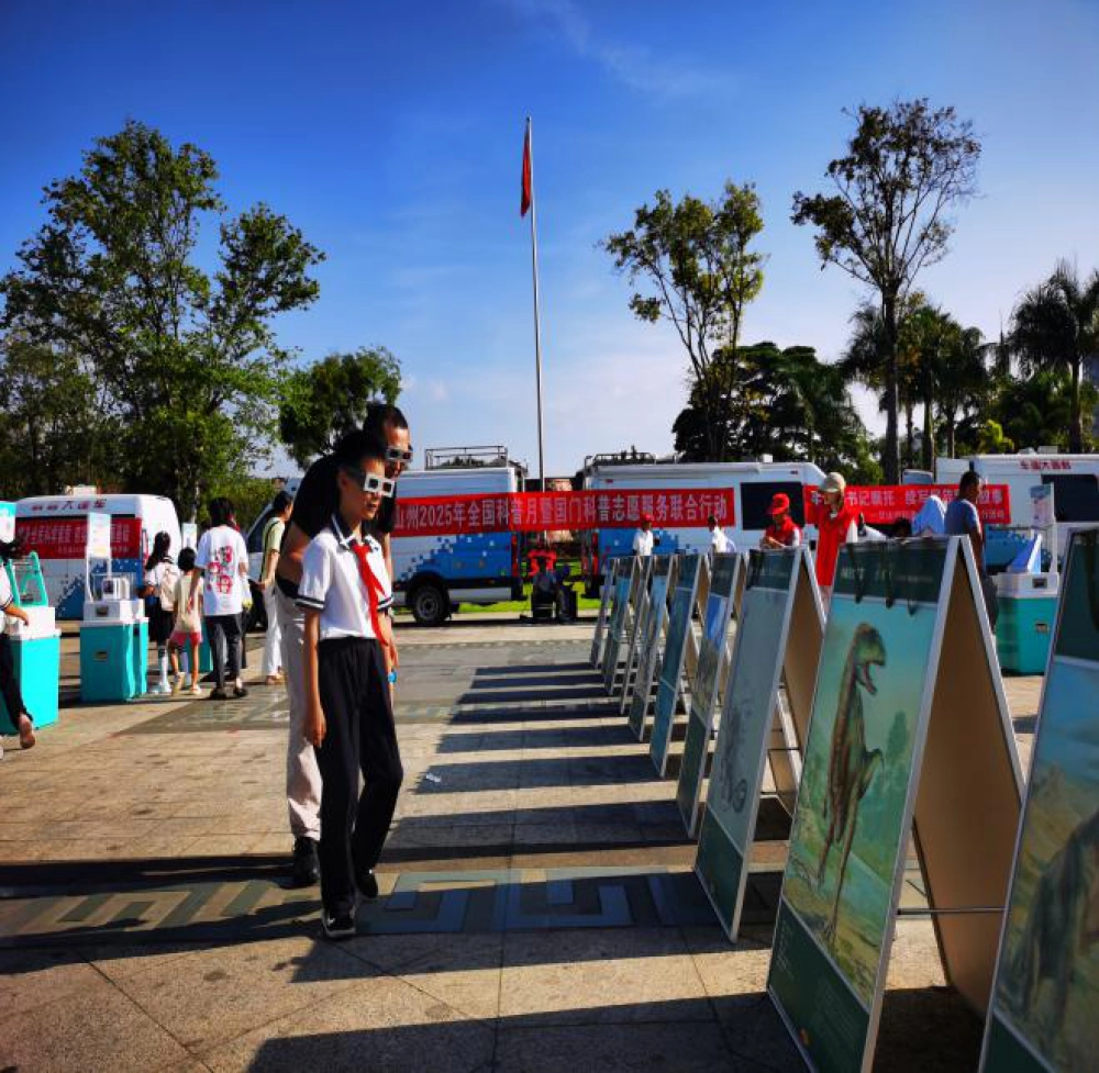 文山州八县市科协科普大篷车联合巡展带来的机器狗“表演队伍”演出,3D科普展板、科普展教具等互动科普展示极具冲击力“吸睛”不断,为5000余人带来了科学新知识。