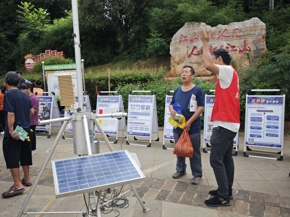 在气象局展区,工作人员重点展示了便携式应急自动气象站,应急移动气象站可以实时观测风向风速、温度、降水量等6个气象要素,开展现场模拟观测12次,图文并茂讲解6类要素的观测原理方法和常见的气象灾害防御办法,吸引大批群众亲手操作体验,有效提升了公众防灾减灾能力。