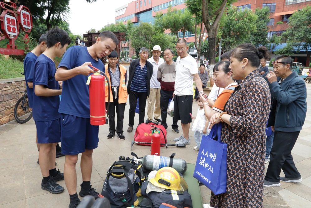 县消防救援大队展区尤为引人关注,集中陈列了包括抢险救援服、液压破拆工具组、灭火器、防烟面罩、独立式感烟报警器等在内的十余件专业装备。消防员现场开展8场实操演示,结合2起真实火灾案例,深入讲解初期火灾扑救和逃生自救知识,进一步强化群众的安全防范意识。