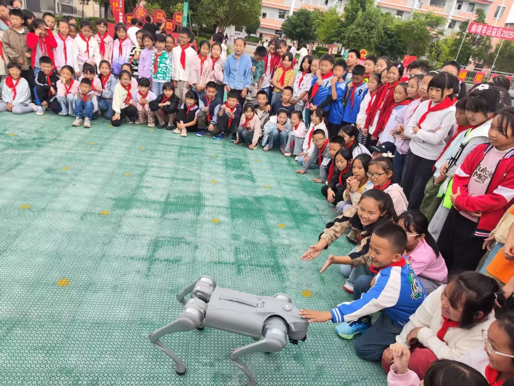 操场上,科普大篷车展出了多种趣味展品,涵盖光学、力学、电磁学等基础科学领域。同学们围在展台前,亲手操作、仔细观察,不时发出惊叹之声。灵活的机器狗和机器人舞蹈表演将现场气氛推向高潮,孩子们笑声不断,眼中充满好奇与兴奋。
