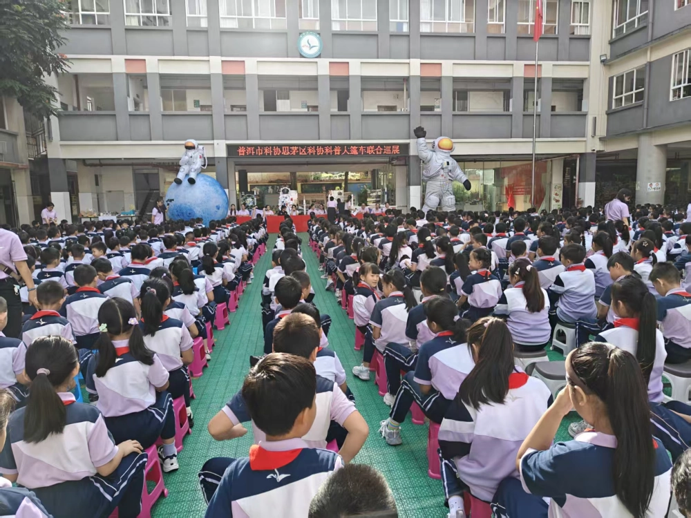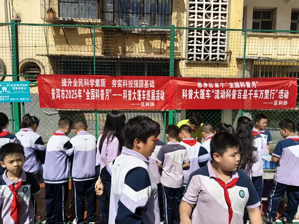 9 月 17 日,为让学生近距离感受科学魅力、在心中种下科学种子,进一步发挥“科普大篷车” 流动科普宣传阵地的作用,为思茅区校园科普活动营造良好氛围。思茅区科协于 9 月 17 日在思茅区第四小学教育集团老街校区开展 “科普大篷车” 进校园活动。