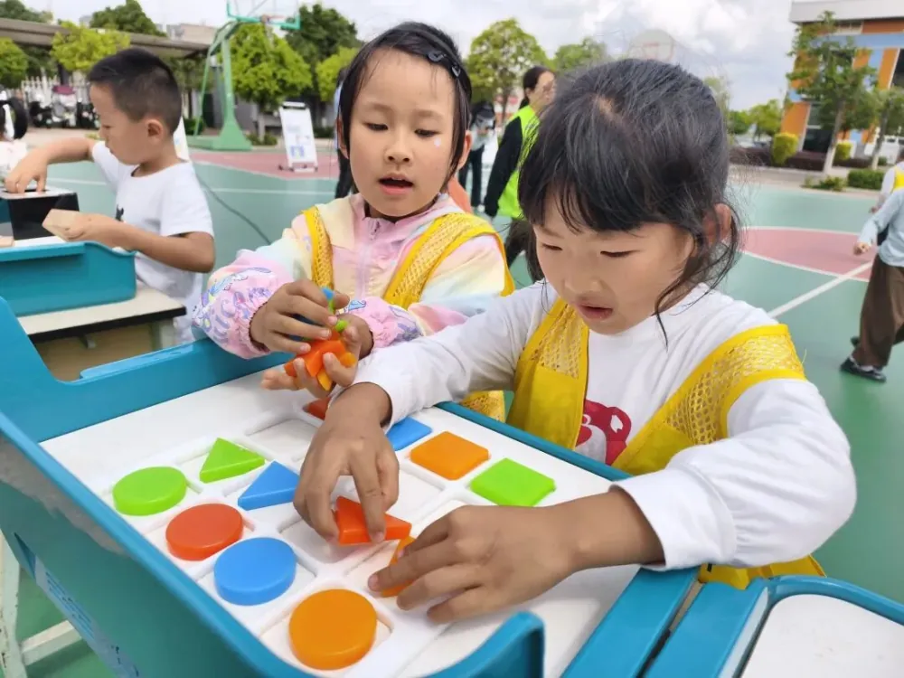 在互动教具区,同学们动手拼装操作,探索几何奥秘和力学原理。在色彩缤纷的几何拼图、木质方块搭建、滚珠迷宫等展品前,孩子们两两一组专注拼接图形,合作搭建模型……这样的科普活动,在不知不觉中锻炼了他们的思维能力和团队协作精神。