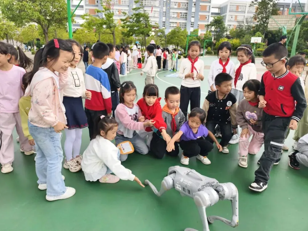 当天,最受同学们欢迎的就是与机器狗的互动区了。只见几只机器狗在指令下灵活转身、跳跃,还能完成“拜年”“打滚”等趣味动作,引得同学们发出阵阵欢呼声。科普老师还现场讲解了机器狗的编程原理,让同学们在互动中初步接触了人工智能知识,感受到科技的灵动与趣味。