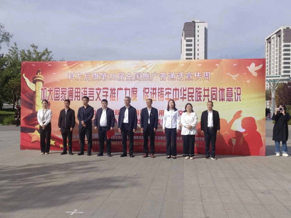 为深入贯彻落实国家通用语言文字推广普及工作要求,以语言文字为纽带促进铸牢中华民族共同体意识,9月17日,由中共科左后旗委员会办公室、中共科左后旗委宣传部、科左后旗教体局、科左后旗民族事务委员会、科左后旗科学技术协会主办的科左后旗第28届全国推广普通话宣传周“加大国家通用语言文字推广力度、铸牢中华民族共同体意识”活动在旗人民广场举行,旗直相关部门领导出席活动,旗教体局副局长吴蒙同志为活动致辞。