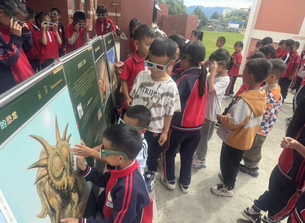 活动现场,科普大篷车带来的3D恐龙展板吸引众多学生驻足。戴上3D眼镜,孩子们仿佛穿梭到恐龙时代,好奇地触摸展板,沉浸在远古生物的世界里。还有科学互动装置,孩子们围在一旁,亲手操作,在实践中感受科学原理的奇妙。
