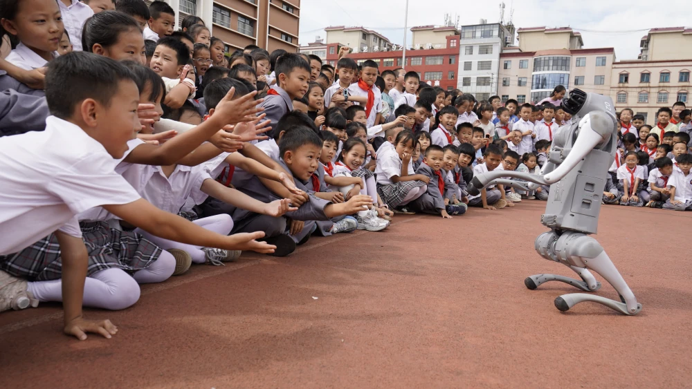 活动现场,机器狗机器人伴随音乐欢快舞动,灵活的身姿、精准的动作,引得同学们阵阵欢呼,现场气氛瞬间被点燃。科学实验秀环节同样精彩,志愿者演示了铅笔穿水袋、马德保半球等趣味实验,神奇的现象让同学们惊叹不已,也引发了他们对科学原理的好奇与思考。