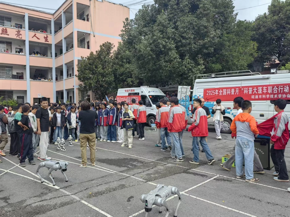 活动现场,科普大篷车车载展品展示区吸引了众多好奇的学生,大家通过互动展具直观了解声、光、电、磁、力学等科学原理;科普实验秀以生动有趣的实验演示,激发学生探索科学的兴趣;科普讲座,则系统讲解了相关科学知识和学习方法,为同学们答疑解惑。机器人表演区不时传来阵阵欢呼,机器人和机器狗成为全场焦点。智能机器人的舞蹈表演和人机互动环节,生动呈现了人工智能技术的应用场景,让大家在欢笑中体验科技的魅力,许多学生踊跃参与互动,现场气氛热烈。