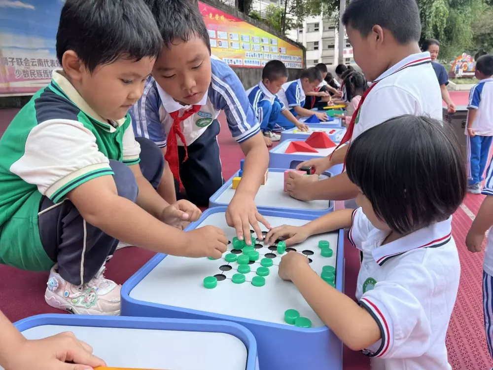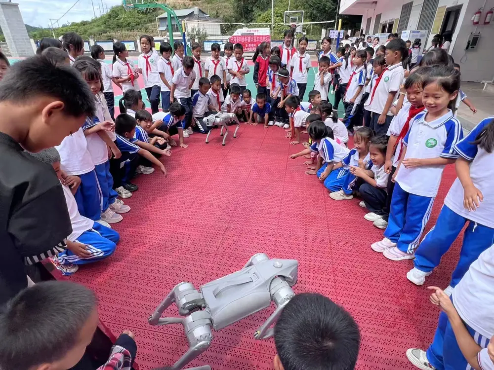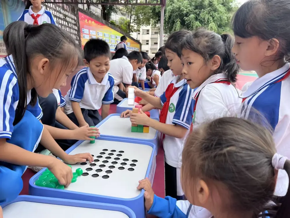 活动中,校园操场变身“临时科技馆”,学校各个班级轮流进行参观体验。科普展板前围满了认真阅读的身影,机器狗灵活可爱的动态展示引来同学们阵阵惊呼,无形的力、牛顿色盘、椎体上滚和数字华容道、双层迷宫、智慧魔方等烧脑游戏则让同学们沉下心来冷静思考细心面对,同学们亲手操作展具、观察现象、互相讨论,在游戏中感受科学的魅力。让人意外的是,不仅学生们积极参与投入,学校老师也纷纷加入互动行列,与孩子们一起操作展品、体验科技。师生同乐、互助互动的画面,成为这个秋日里最温暖的风景。