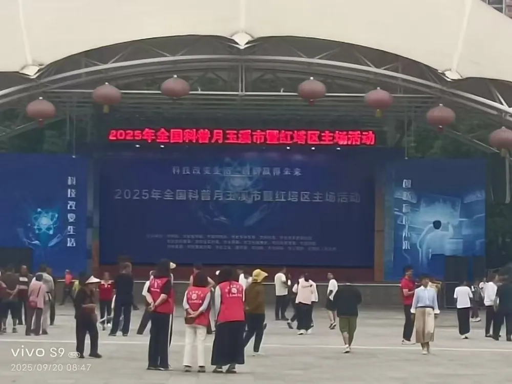9月20日,玉溪市 2025 年全国科普月活动启动仪式在聂耳文化广场举行,活动主题“提升全民科学素质·夯实科技强国基础”,通海县科协积极响应市科协要求,丁超主席与志愿者携科普大篷车前往主会场参与开展科普展示活动、科普体验活动及科普宣传活动。