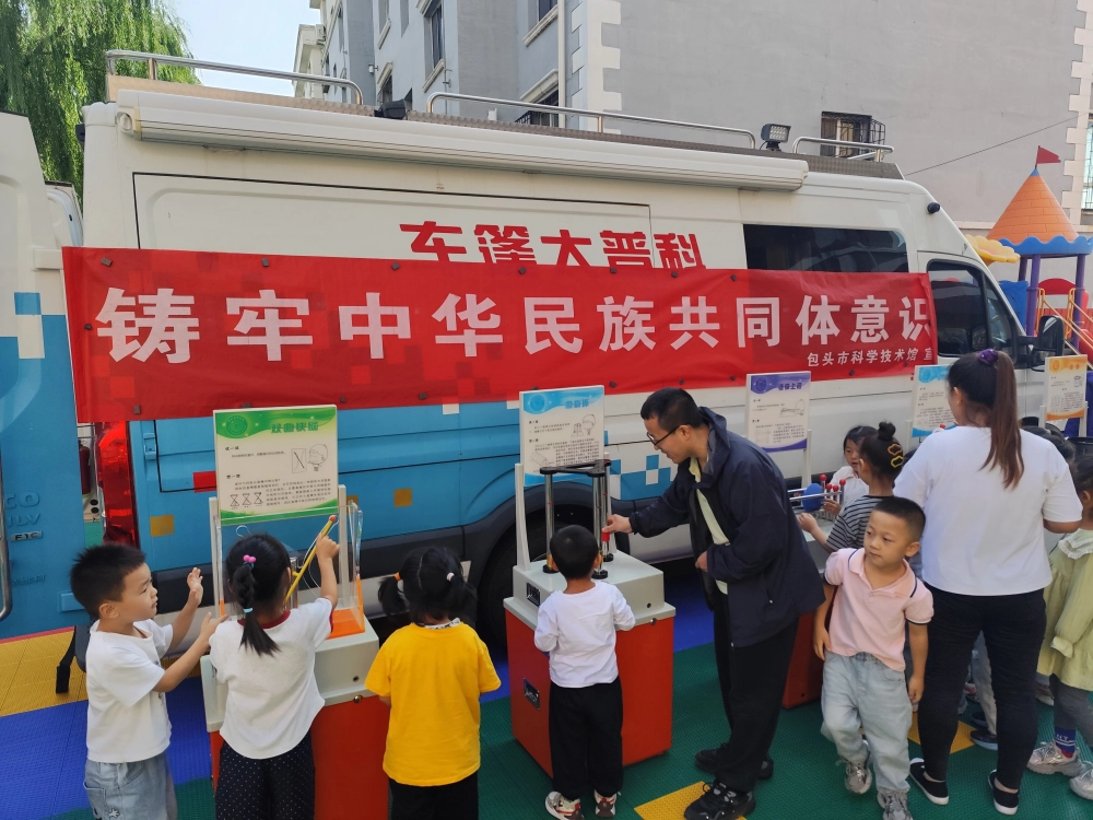 9月4日,全国科普月期间,市科技馆科普大篷车满载着科学知识,缓缓驶入九原区英杰幼儿园。本次活动借助丰富多样的科普展品以及生动有趣的科学实验互动体验,为师生们精心打造了一场沉浸式的“科普盛宴”,在园内营造出浓厚的崇尚科学、探索真知的氛围,开启了一场别具一格的人工智能科普之旅。