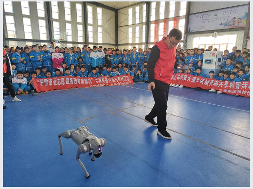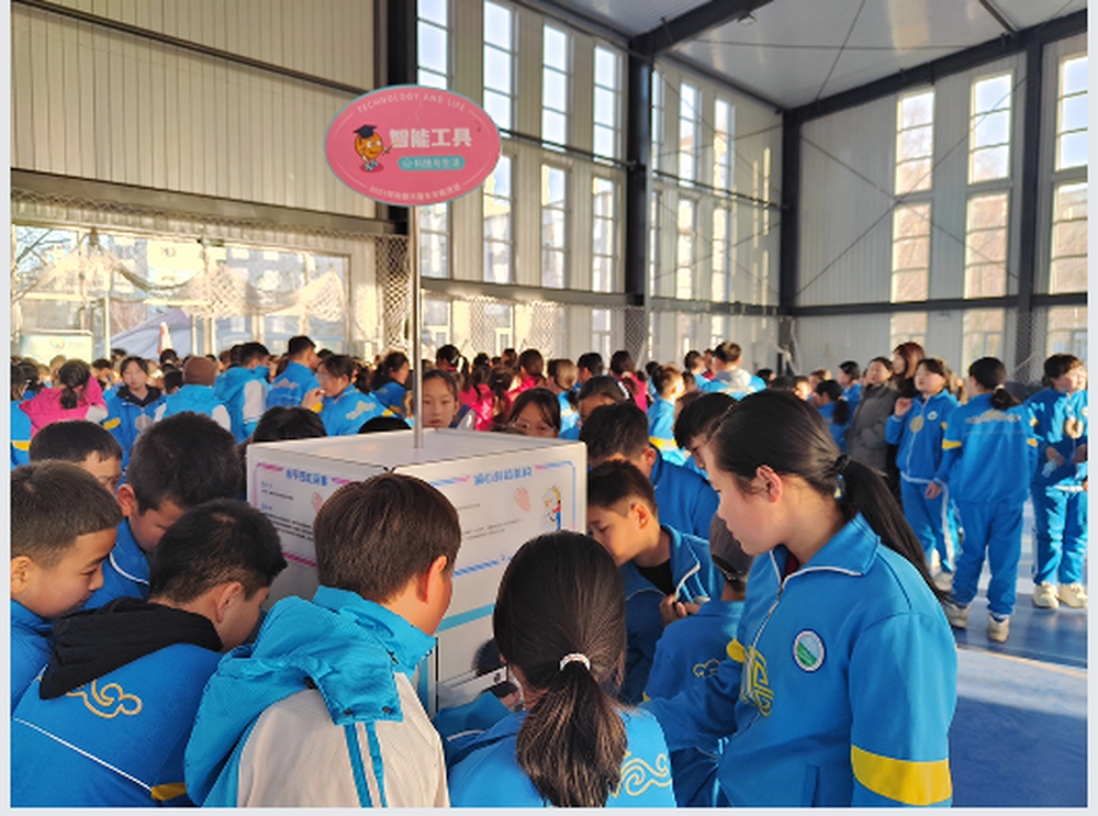 该学校体育馆内则是另一番热闹景象。科普大篷车展品展览吸引了众多学生驻足围观,各类充满趣味性与科学性的展品,让学生们在动手操作中感受到科学的魅力。机器人群舞表演和机器狗表演更是将活动推向了高潮,机器人整齐划一的动作、机器狗灵活敏捷的身姿,引得现场学生们欢笑尖叫不断。这些精彩的表演不仅让学生们近距离接触到先进的科技成果,更激发了他们对科学技术的浓厚兴趣。