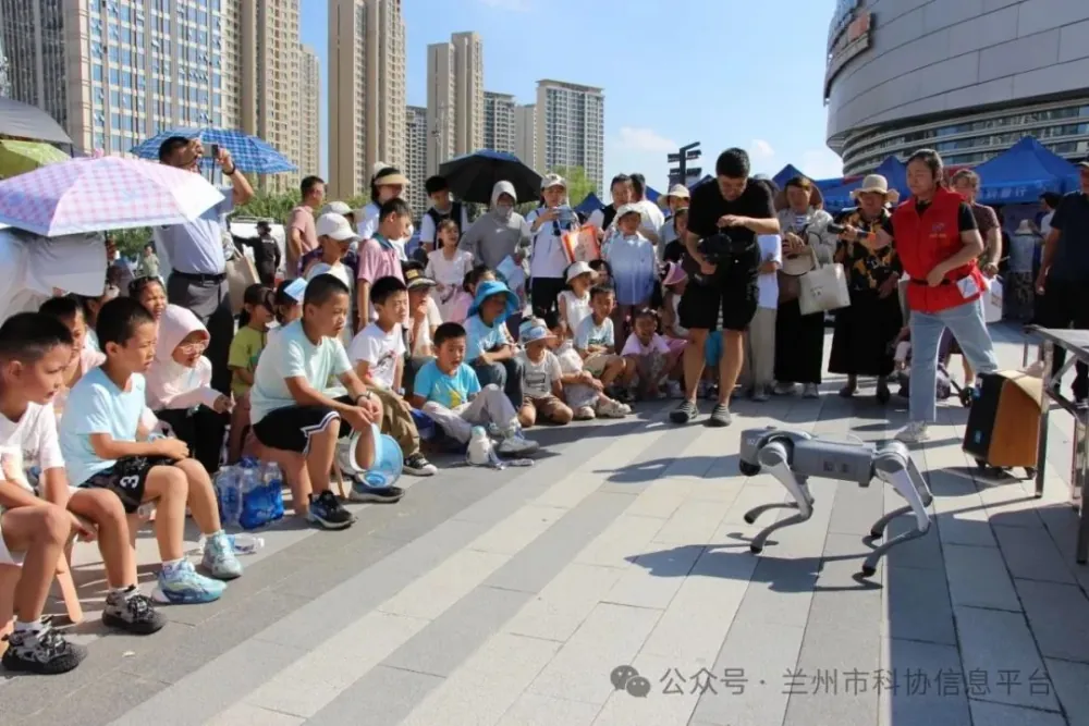 省、市科协和城关区、西固区科协的科普大篷车展示成为全场焦点,吸引了大批群众特别是小朋友驻足围观。灵动机器人随音乐起舞,憨态可掬的机器狗稳健行走,赢得阵阵喝彩。涵盖物理、化学、生物等多学科的科普展具,通过直观展示和互动体验,让公众切身感受科技魅力。甘肃弗雷科技科普基地与七里河区河湾堡社区科普志愿服务队的科学表演秀、无人机表演及射击器械展示,更将现场科技氛围推向高潮。