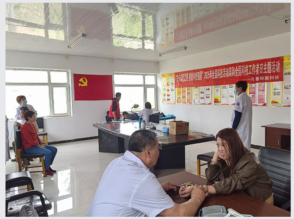 在“全国科技工作者日”即将来临之际, 为弘扬伟大的科学家精神,发挥广大科技工作者们的优势和作用,服务基层群众,助力乡村振兴,扎鲁特旗科协联合扎鲁特旗济世中蒙医医院,组织医疗卫生领域的科技工作者共15人,开展了一场送医、送药、送科技“三下乡”惠民活动。本次活动于2025年5月21日在乌日根塔拉农场一分场举行,吸引了众多当地分场职工参与,获得一致好评。