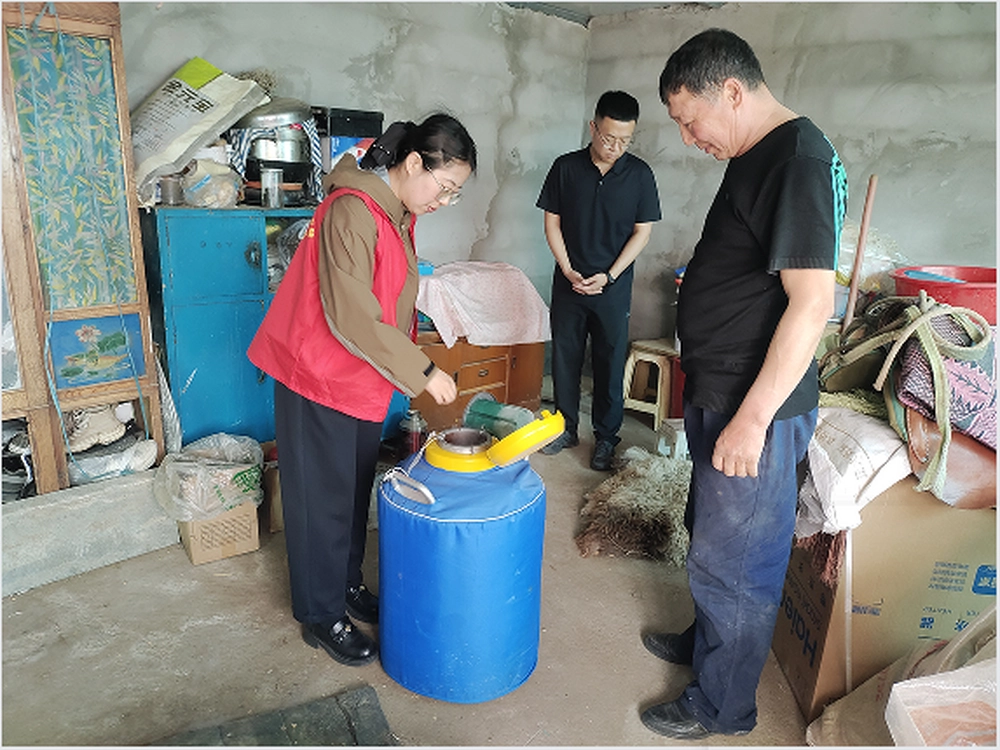 除技术传授外,曲蕾副主任还逐一查看牧民家中的液氮罐使用和保存情况。她仔细检查液氮罐的密封性、液氮剩余量,提醒牧民定期检测设备性能,规范液氮补充流程,避免因设备问题导致冻精失效。同时,她还向牧民普及液氮罐安全使用知识,强调低温防护和应急处理要点,切实保障技术应用的安全性和有效性。