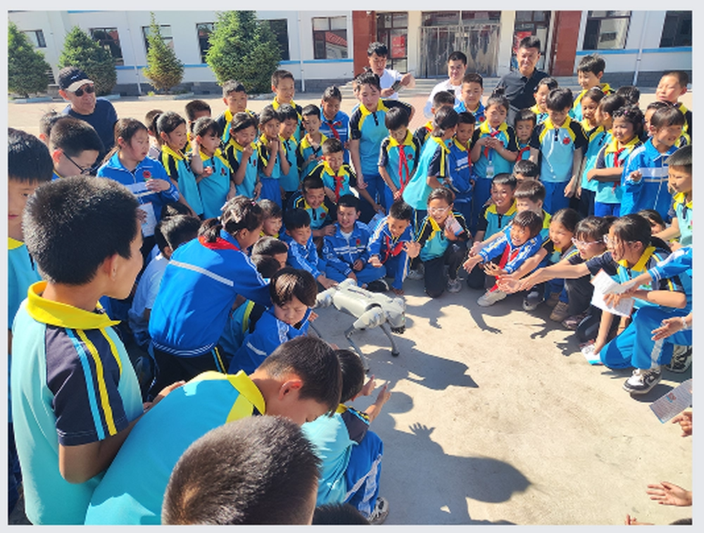 科普大篷车区域资源共享活动同样精彩纷呈。科普大篷车带来了丰富多样的科普展品,涵盖了物理、光学、人工智能等多个领域,为师生们构建起一个流动的科技馆。而最让同学们兴奋不已的,莫过于机器人和机器狗的精彩表演。当机器人整齐划一地完成高精度的集体舞蹈动作,机器狗灵活地展示空翻等高难度动作时,现场瞬间爆发出阵阵热烈的欢呼声和惊叹声。孩子们眼中闪烁着好奇与兴奋的光芒,纷纷围拢过来,近距离观看这些科技 “明星” 的精彩表现。表演结束后,同学们更是迫不及待地想要知道是如何操纵机器人和机器狗,感受科技带来的神奇魅力。在工作人员的耐心指导下,孩子们小心翼翼观察着设备,脸上洋溢着满足的喜悦。他们一边观看,一边不停地向工作人员询问着各种问题,对人工智能技术充满了浓厚的兴趣。