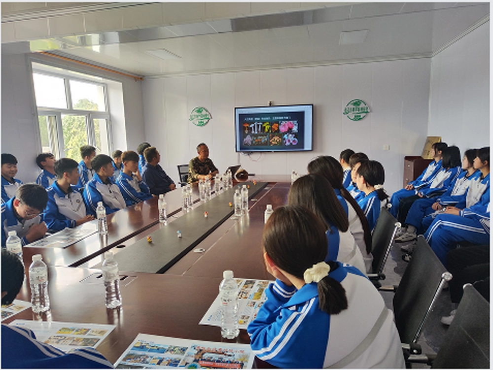 活动伊始,同学们来到科技小院,一场关于蘑菇菌种培育的 PPT 讲解让大家眼界大开。科技小院依托单位负责人孙海波为大家做了题为《走进真菌世界》的简单讲座,讲了真菌的分类,重点辨识可食用真菌和有毒真菌,食用菌的营养价值以及有毒真菌在医学上的应用研究。还介绍了科技小院科技成果转化课题――“林菇共育”技术。同学们认真聆听,积极提问,对农业科技的神奇有了更深刻的认识。紧接着来到科普室,那里摆放着在科技小院周边采集到的各种蘑菇标本,进行标本实物零距离观察与手动触验,得到了沉浸式体验,对大自然的神奇与魅力感叹不已。走出活动室后在专业人员的带领下,同学们参观了科技小院的“林菇共育”技术实验苗木基地,实地观摩学习了带菌根的各种苗木培育情况,零距离接触到内蒙古大学生命科学院魏杰博士团队研究推广的最新科研成果应用,了解了菌根食用菌的生产栽培过程。