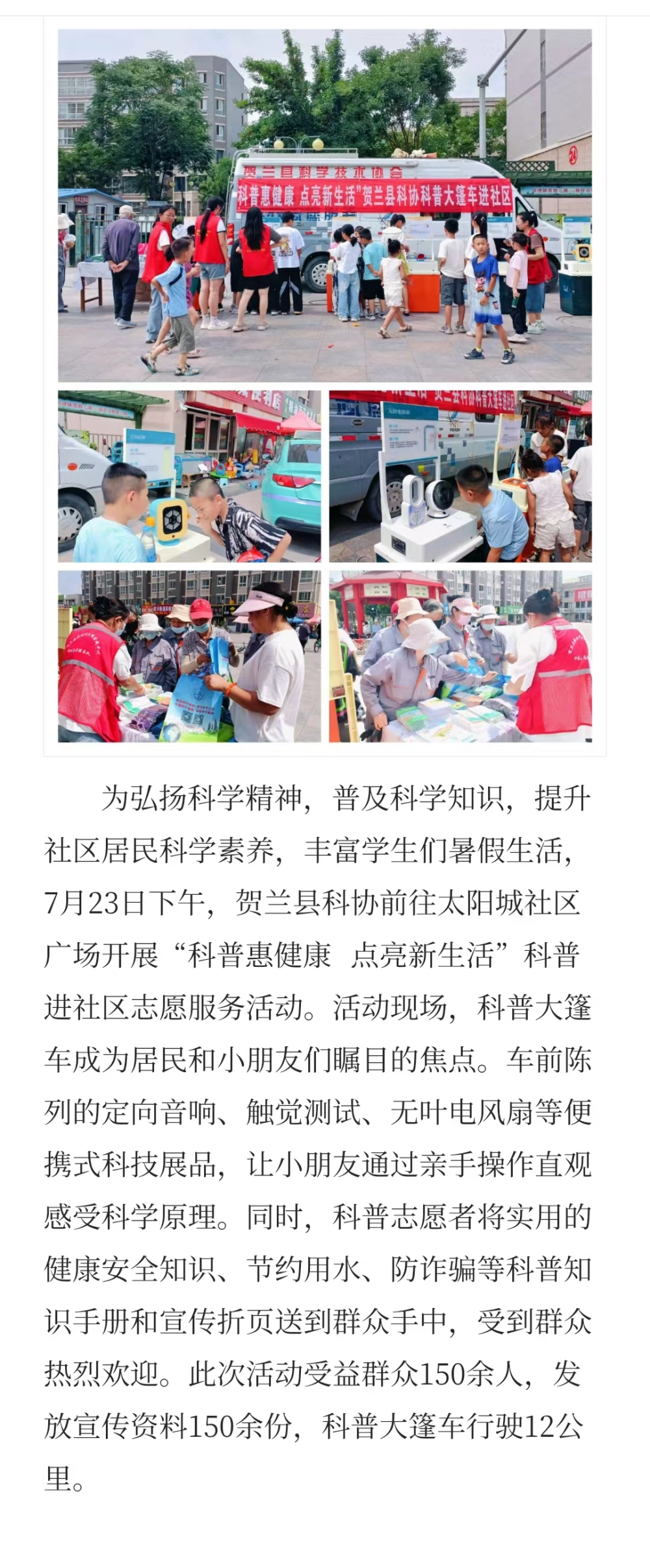 科普惠健康·点亮新生活—宁夏贺兰县科协开展科普大篷车进社区志愿服务活动