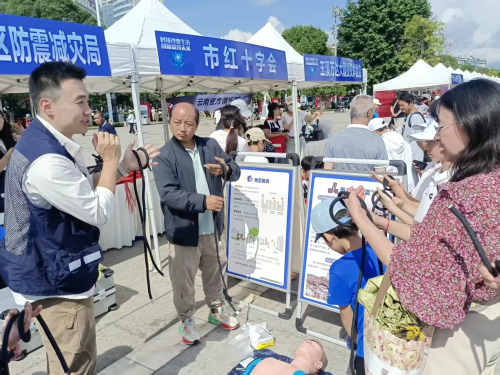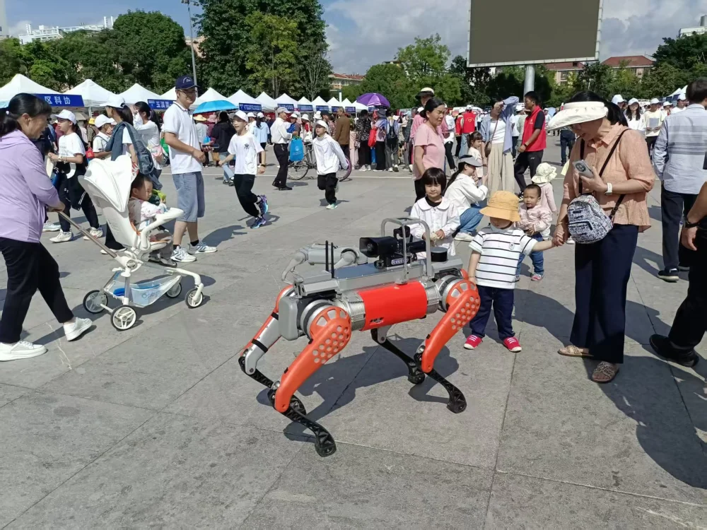 活动当天,聂耳音乐广场热闹非凡。以“科技改变生活 创新赢得未来”为主题的主场活动,内容丰富多样。趣味知识问答环节,市民们踊跃参与,现场气氛热烈;前沿科技展品区域,机器狗、机器人、天文望远镜等吸引众人目光,大家近距离感受科技的神奇。