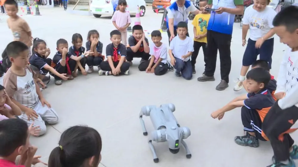 来到陶村小学操场,科普人员将3D展板、思维小游戏、VR眼镜、机器人、机器狗等科普展品一一陈列。学生们有序排队参观并体验,不少学生对手中的VR眼镜兴奋不已,其中展出的下象棋机器人吸引了众多学生前来观看,部分同学还与机器人开展了一场人机对弈,比赛你追我赶,十分激烈。