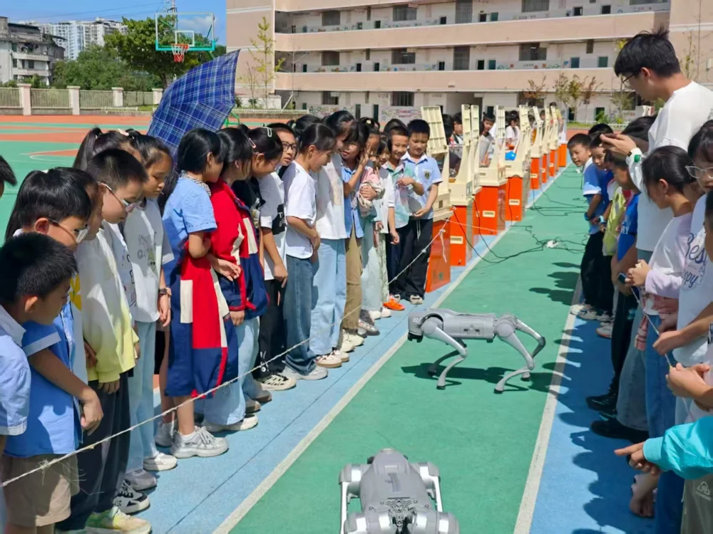 最令校园沸腾的是智能机器狗的登场。随着指令,它灵活完成跳舞、拜年、向前跳等动作,每一个精准姿态都引得全场欢呼,让学生直观感受人工智能的魅力。