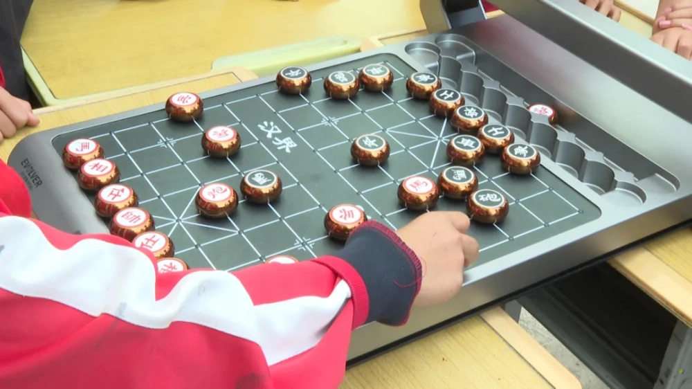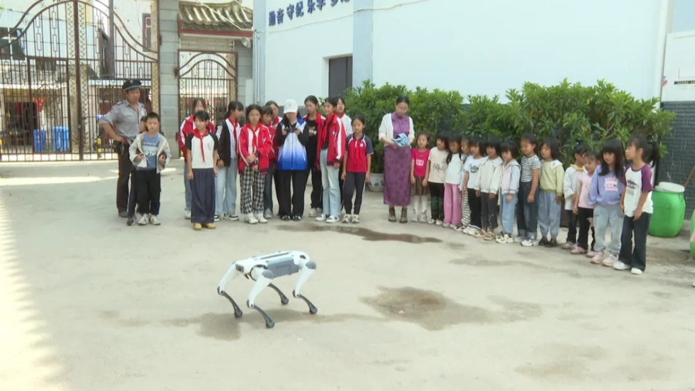 来到陶村小学操场,科普人员将3D展板、思维小游戏、VR眼镜、机器人、机器狗等科普展品一一陈列。学生们有序排队参观并体验,不少学生对手中的VR眼镜兴奋不已,其中展出的下象棋机器人吸引了众多学生前来观看,部分同学还与机器人开展了一场人机对弈,比赛你追我赶,十分激烈。