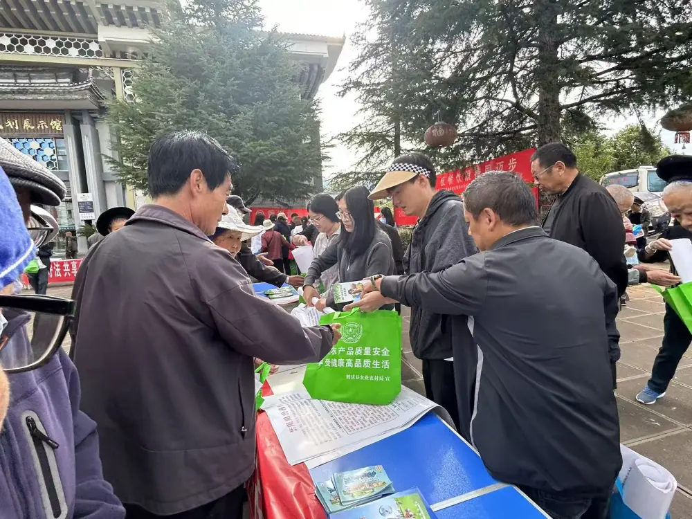 为响应全国食品安全宣传周号召,切实提升公众食品安全素养,筑牢 “舌尖上的安全” 防线,鹤庆县科学技术协会联合鹤庆县人民政府食品安全委员会办公室牵头,协同县市场监督管理局、协同县商务和市场监管局、县卫生健康局、县检察院、县农业农村局、县公安局、县卫生健康局、县检验检测所等多部门,于 2025 年 9 月24日,在云鹤镇文庙公园规划展示馆门口集中开展主题为 “尚德守法、共享食安” 的食品安全宣传周活动。活动聚焦本地实际需求,特别强化野生菌中毒预防等区域性风险防控宣传,与此前县食安办发布的野生菌中毒预警公告形成联动响应。通过宣传咨询台、资料发放等形式,普及高风险食品识别、野生菌中毒预防等知识。活动现场接受群众咨询超1000余人次,发放《健康知识读本》、《趣味科普知识》读本2000余份,多部门结合职能精准传递食安理念。此次宣传有效提升了公众食品安全意识与企业 “尚德守法” 经营意识,获得群众充分肯定。