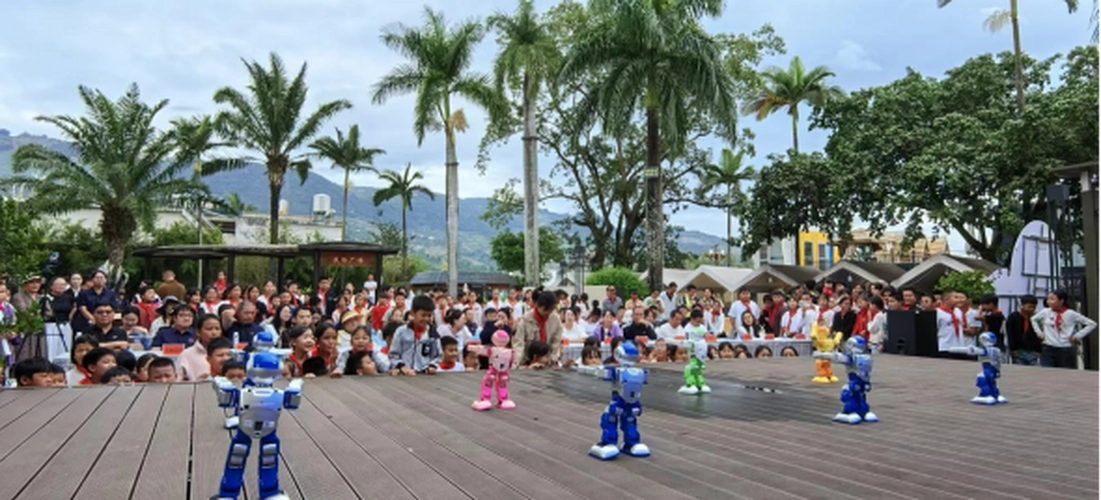 科普秀场成为全场焦点。机器人、机器狗伴随着动感音乐起舞,赢得掌声雷动;科普实验秀《神奇的大气压》《蘑菇云里的秘密》让孩子们惊叹不已;音乐快板《科普宣传进乡村》用乡土乡音唱出“科技兴农”新愿景,节目以当地方言演绎农业科技赋能乡村振兴的故事,引发群众共鸣。