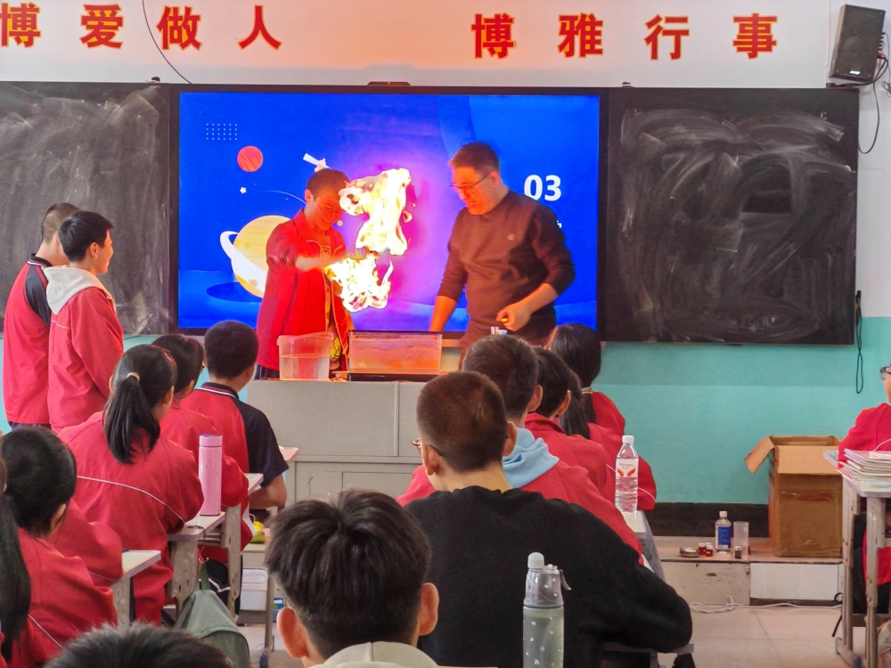 随后,活动走进第一中学,一场震撼的“科学秀”拉开帷幕。“火焰掌”表演中,工作人员手持燃烧的火焰却安然无恙,结合原理讲解让同学们破除“火必伤人”的认知误区;“焰色反应”实验里,不同金属离子在火焰中呈现出红、绿、紫等绚丽色彩,宛如一场“化学烟花秀”;“彩虹密度塔”则通过分层叠加不同密度的液体,打造出色彩分明的“液体金字塔”,直观展示密度差异的科学原理。