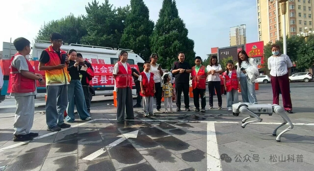 活动现场,“科普大篷车”变身移动科技馆,搭载了机器人、机器狗、跳舞的回形针、无弦琴等科技互动展品。小记者们在家长的陪伴下,通过亲手操作,观察现象、现场提问,掌握了声、光、电、力等相关科学知识。一名正在操控机器狗的小记者兴奋地说:“松山区科学技术协会的老师手把手地教我们操控机器狗。在我的控制下,机器狗会做出各种动作,真是太神奇了。”