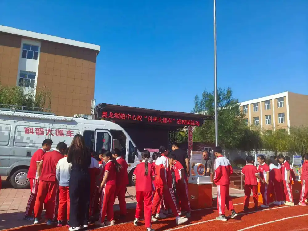 活动现场,操场上早已搭建好的科普展品吸引了全体学生的目光。在科技辅导员的耐心讲解下,学生们或驻足观察,或轻声讨论,或动手操作,沉浸式感受着科技的魅力,现场氛围热烈而浓厚,孩子们的脸上都洋溢着对知识的渴望与探索的喜悦。此次科普大篷车进校园活动,不仅让黑龙坝中心校的学生们近距离触碰了科学的神奇奥秘,更激发了他们热爱科学、探索未知的热情。