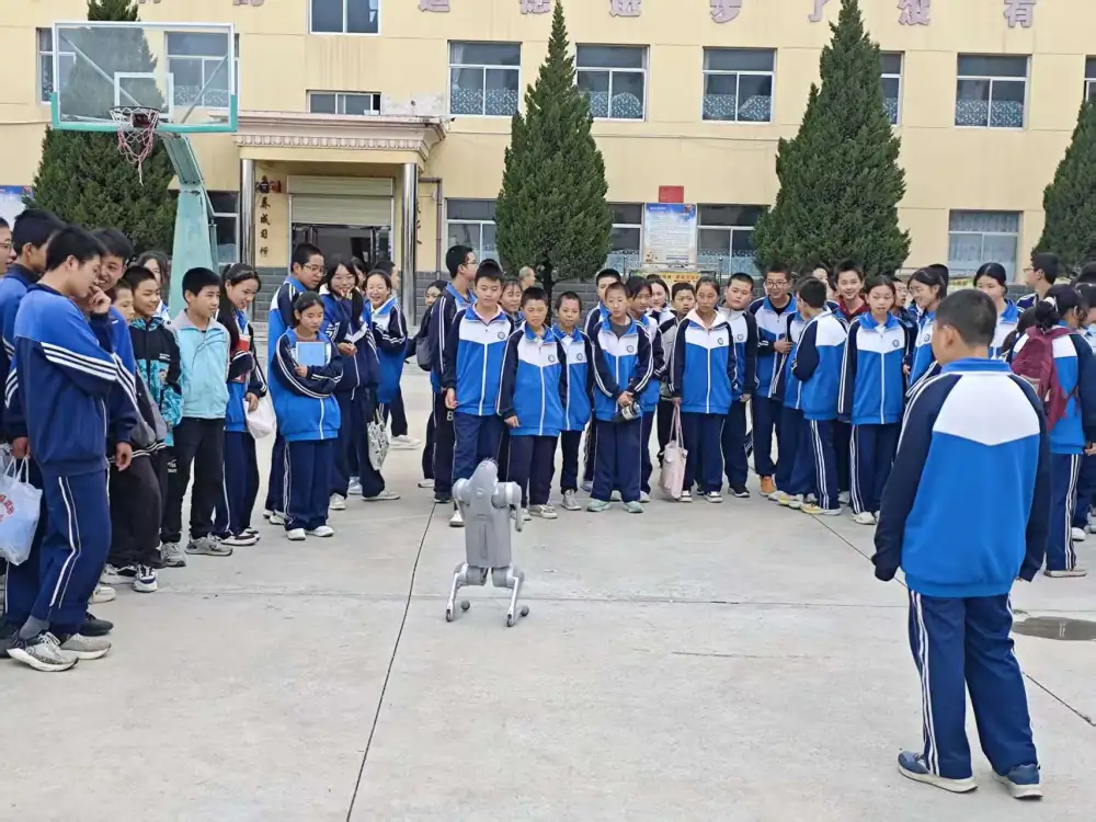 9月23日,正宁县科协科普大篷车携带23套科普展品、20面科普展板、机器人、机器狗等走进周家镇初级中学。