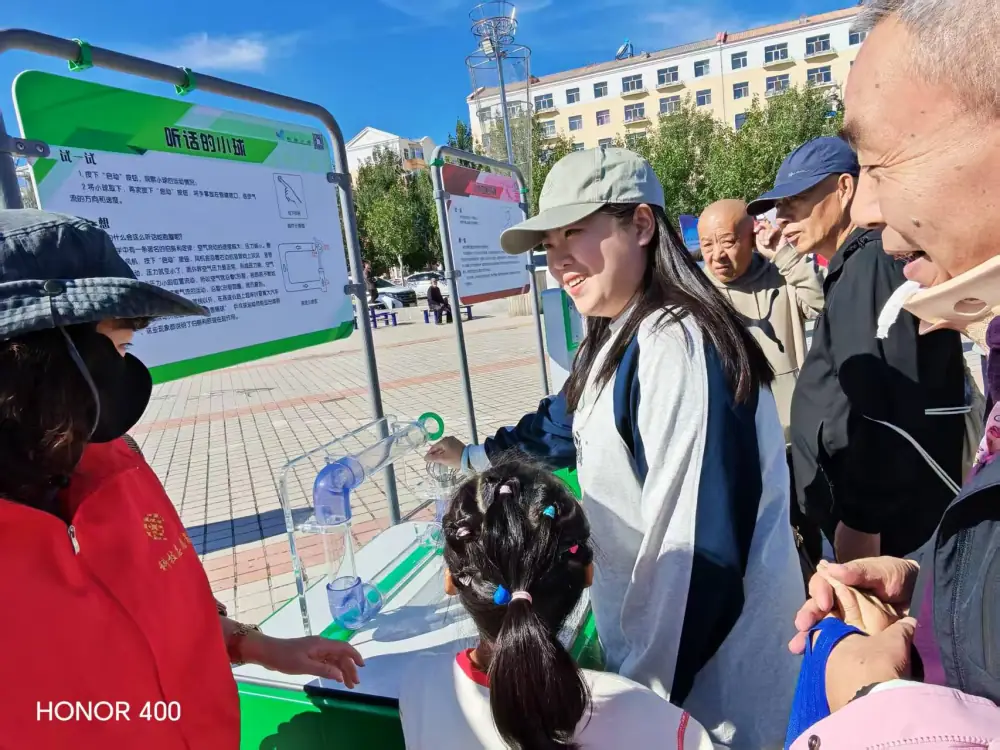 为推动科学知识普及,让前沿科技走进基层、贴近群众,8月26日,扎赉诺尔区“流动科普百县千车万里行活动”科普大篷车驶入榕欣社区广场,开展了一场别开生面的科普盛宴。活动现场,“听话的小球”等趣味科普装置吸引了众多市民参与。工作人员耐心讲解伯努利原理,让大家在动手操作中理解空气流速与压强的关系,不少孩子和家长围在装置前,反复尝试、热烈讨论,在互动体验中感受科学的魅力。