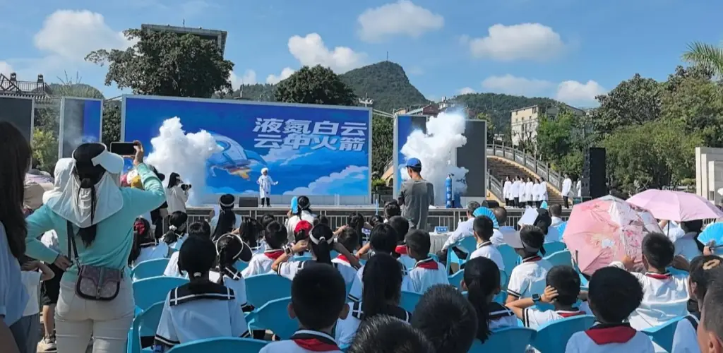 主场活动现场,精彩纷呈的舞蹈表演、舞台剧《碳循环的生物密码》;竞争激烈的科普知识大挑战;科技感满满的科技秀—乒乓球加特林、空气大炮、云中火箭等多种形式,为科普宣传拉开精彩的序幕。