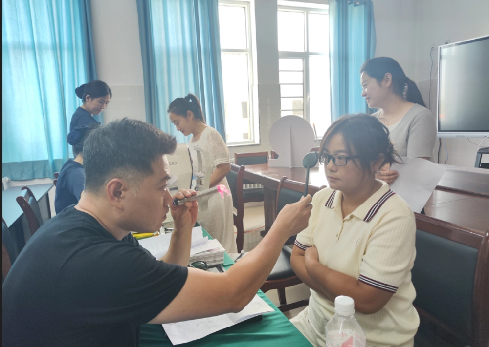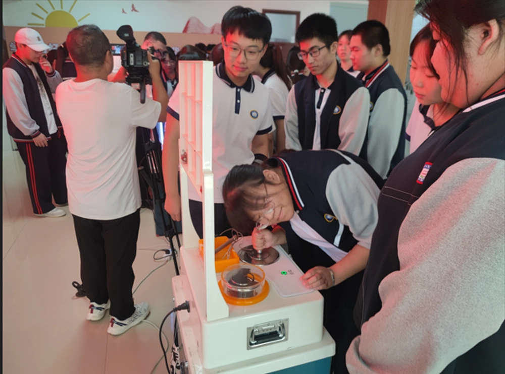 与会领导和嘉宾观摩了机器人婀娜多姿的群体舞蹈、机器狗机灵古怪的技艺表演,也看到职业教育中心的学生们兴高采烈的亲自动手进行“骨传导”等科普大篷车展品实操体验。旗职业教育中心教职工和学生们排队进行包括视力和视觉测定、排查眼底病变等在内的6项诊断。