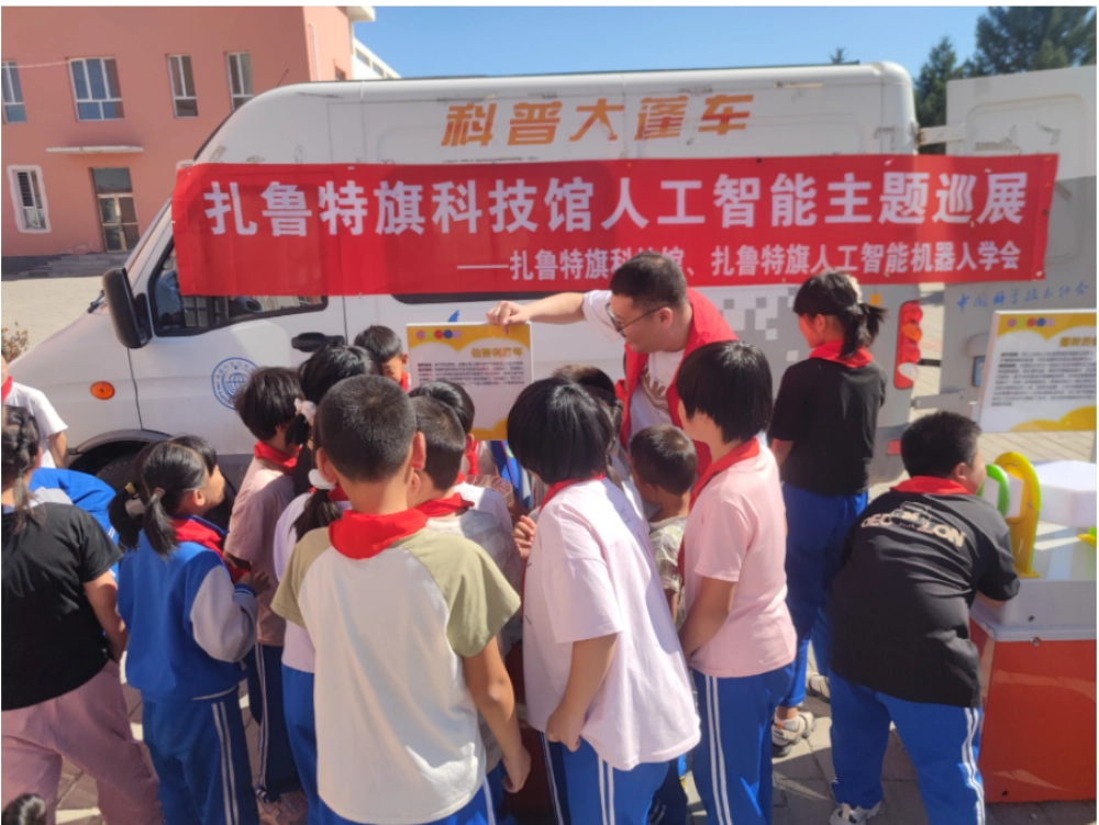 在全国科普宣传月期间,扎鲁特旗科技馆精心组织“人工智能主题巡展进校园”活动和“科普大篷车区域资源共享”主题活动,9月10日,大篷车载着科普展品,先后走进香山农场学校与乌日根塔拉农场学校,为两校师生带来一场沉浸式科学盛宴。