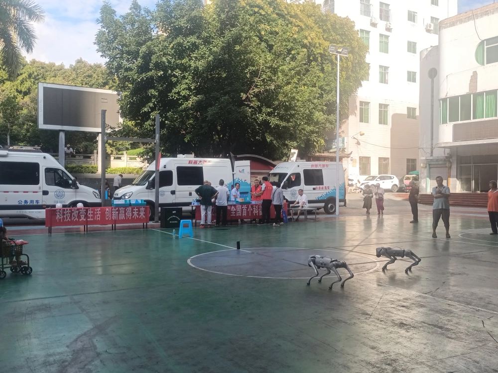 活动现场,科技展示环节尤为引人注目。智能机器狗在场地中灵活移动,时而奔跑,时而坐下,还能根据指令做出握手等憨态可掬的动作。当音乐响起,舞蹈机器人随着音乐节拍灵活扭动,配合节奏完成各种复杂动作。旁观群众不时发出惊叹声,纷纷感慨科技的神奇力量。