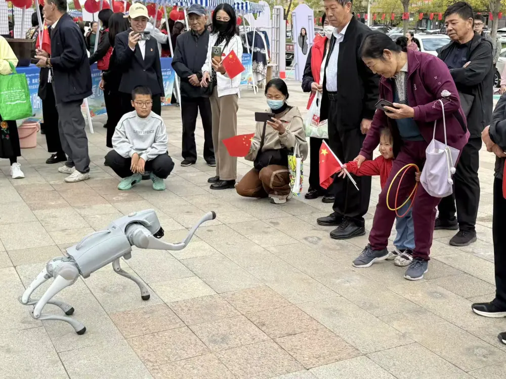 在“横波与纵波”“飞舞的小球”等经典展品前,大家通过亲手操作,理解了伯努利原理等隐藏在生活现象背后的科学规律。“磁扣”展品则揭示了防盗门背后的科学机制,引发大家对电磁感应现象的浓厚兴趣。最受青少年和孩子们欢迎的,当属智能机器狗和VR眼镜。机器狗灵活完成后空翻、跳跃等高难度动作,引来阵阵掌声;VR眼镜则让体验者仿佛“穿越”至浩瀚宇宙,在沉浸式的虚拟世界中探索星辰奥秘。活动中,科技辅导员耐心细致地为每位参与居民讲解原理、发放科普宣传册,用通俗易懂的语言解答各类科学疑问。“以前总觉得科技离我们很远,今天才发现科学就在身边。”社区居民张阿姨高兴地说。