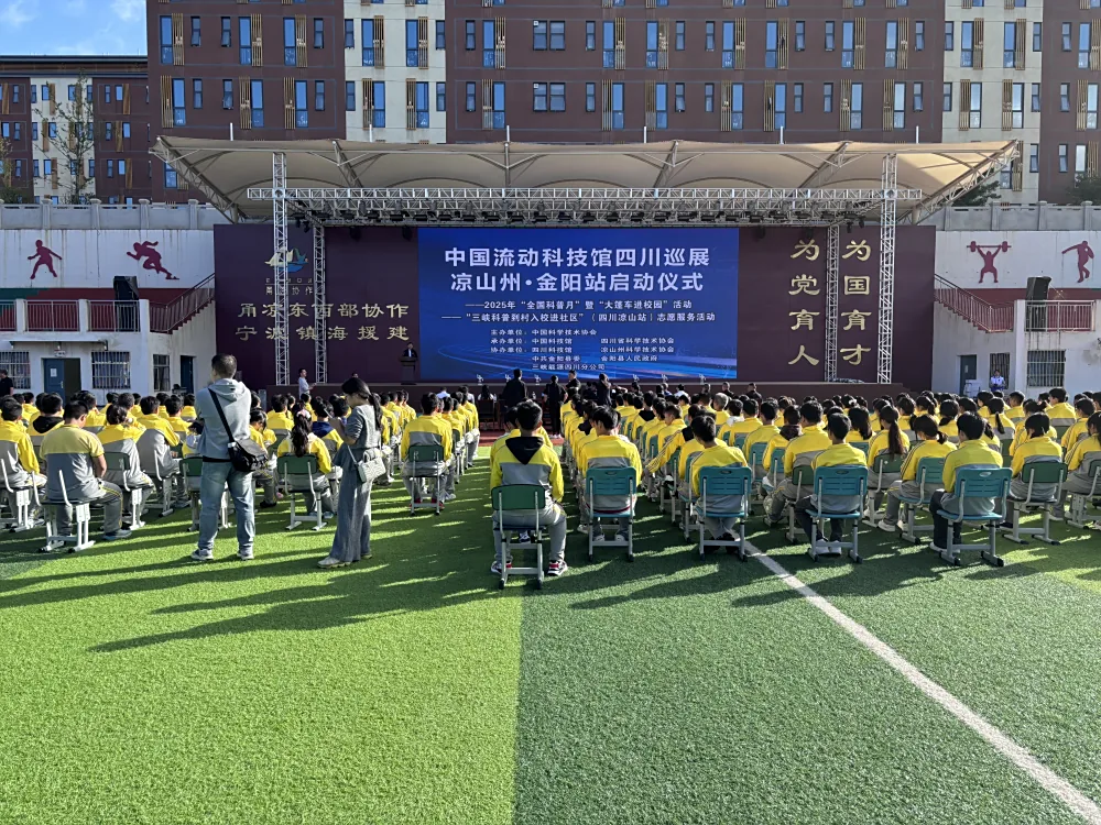 为深入贯彻落实凉山州 2025 年 “全国科普月” 工作要求,破解彝区偏远学校科普资源匮乏难题,近日,会理市科协参加了凉山州科协组织的“2025年科普进彝区、大篷车进较园”的活动。会理市、会东县、盐源县等8个县市专业科普服务团队,驾驶满载科技资源的科普大篷车,到金阳中学以沉浸式、互动式科普体验,为 1000 余名彝区学子打开探索科学世界的大门。