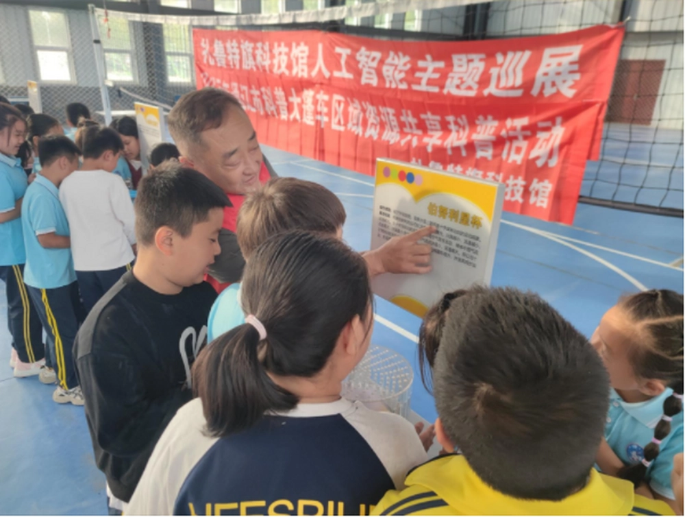 为激发青少年对科学技术的兴趣,提升科学素养,2025年9月22日,扎鲁特旗科技馆开展人工智能主题巡展进校园活动,同时,2025年通辽市科普大篷车区域资源共享科普活动也同步开启,满载科技奥秘的科普大篷车缓缓驶入鲁北一小,为全校师生带来了一场充满趣味与惊喜的科技盛宴。
