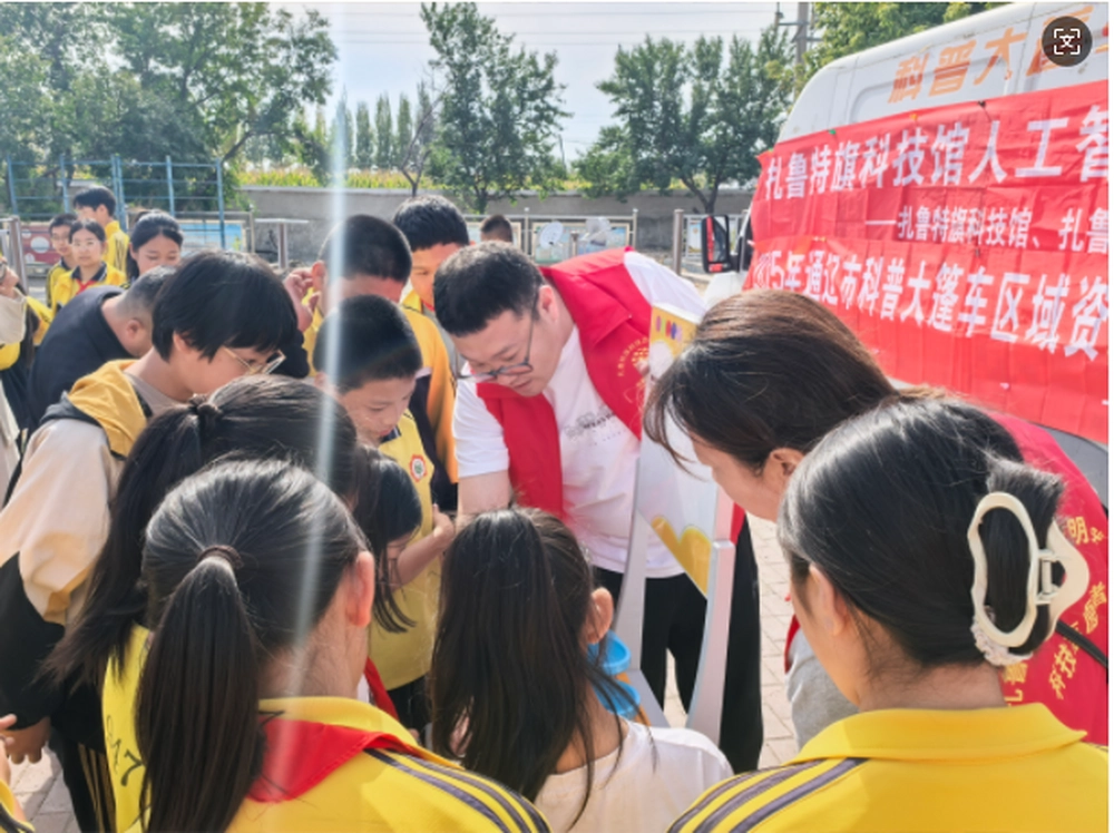 2025年9月23日,为响应全国科普宣传月活动号召,扎鲁特旗科协走进扎鲁特旗第四小学,同步开展“人工智能进校园”与“2025年通辽市科普大篷车区域资源共享”活动,用丰富的科技体验唤醒学生对科学探索的热情。