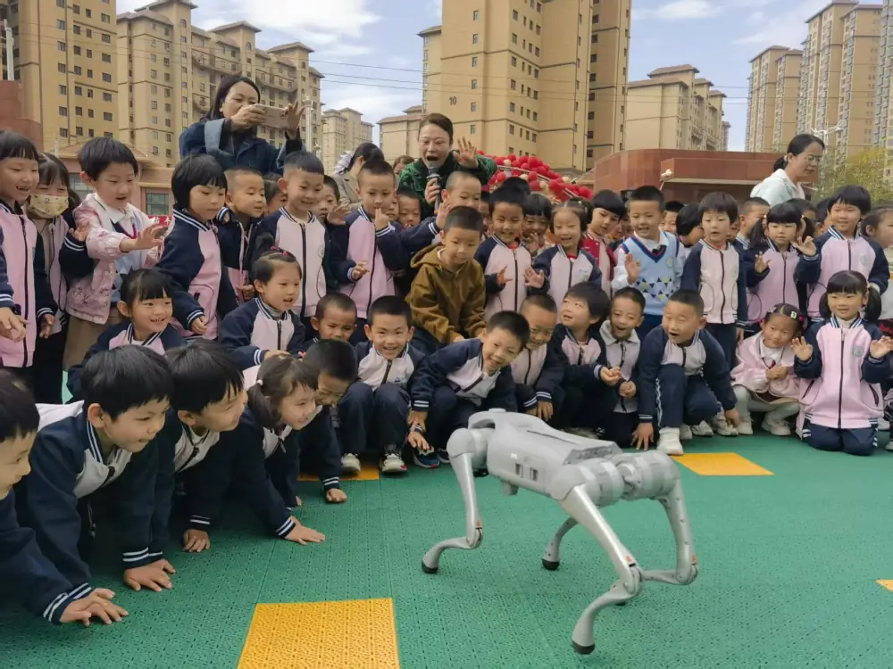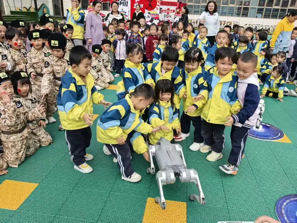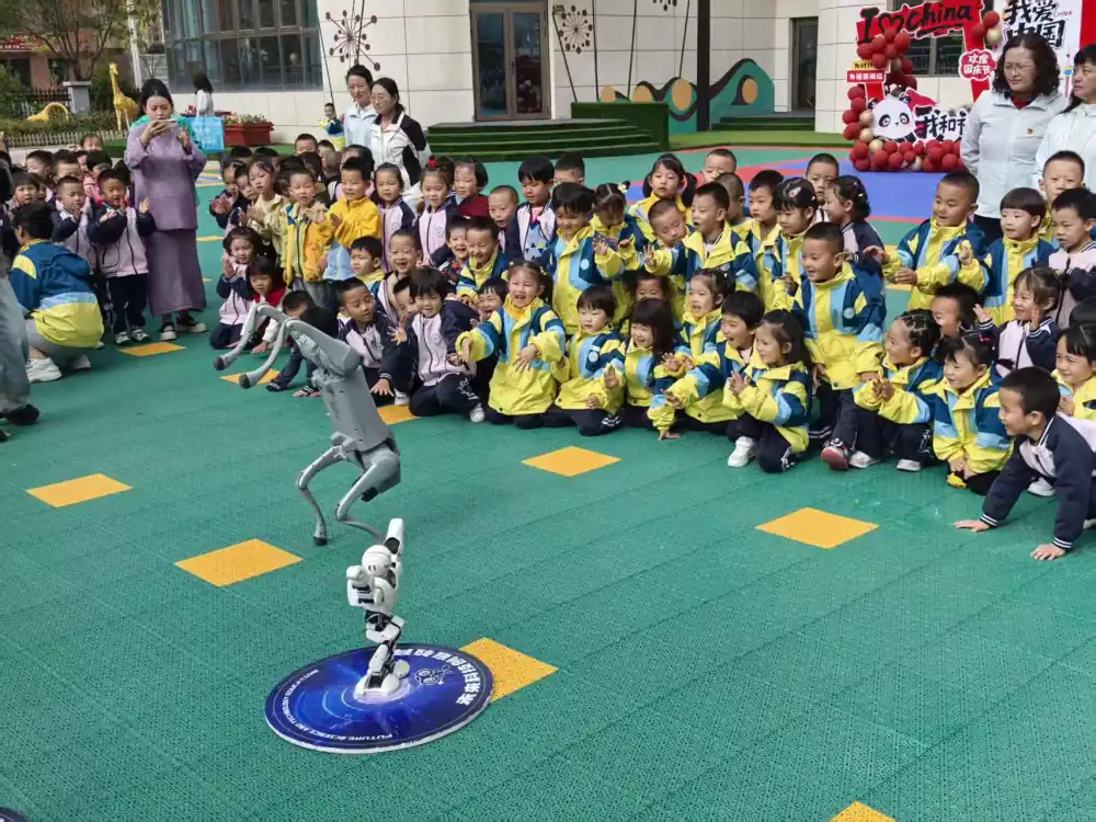 活动现场,满载科学奥秘的科普大篷车吸引了孩子们的目光。工作人员带来了机器人、机器狗和无人机表演,伴随着欢快的音乐,机器人、机器狗灵活地舞动,做出各种高难度动作。孩子们一边拍手观看,一边合作 “舞蹈”,机器狗“旋转”“翻跟头”“比心”等动作更是赢得了孩子们的阵阵掌声和欢呼声。