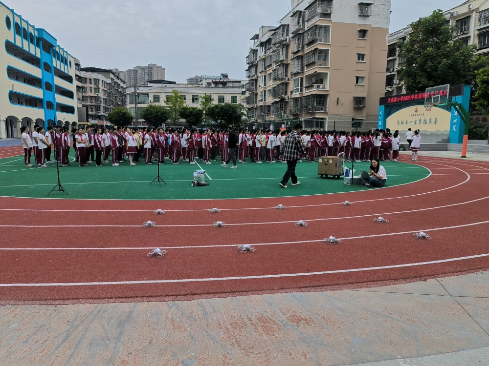 除了智能机器人,精彩纷呈的科学实验秀同样吸睛。科普老师们通过一系列“魔法”般的物理、化学实验,将深奥的科学原理以最直观、最有趣的方式呈现出来,让同学们在惊叹中感受科学的魅力。最后,无人机编队表演压轴登场,多架无人机在操场上空时而盘旋、时而列队,划出优美的弧线,精准的操控和变幻的队形,为全体师生献上了一场震撼的视觉盛宴。