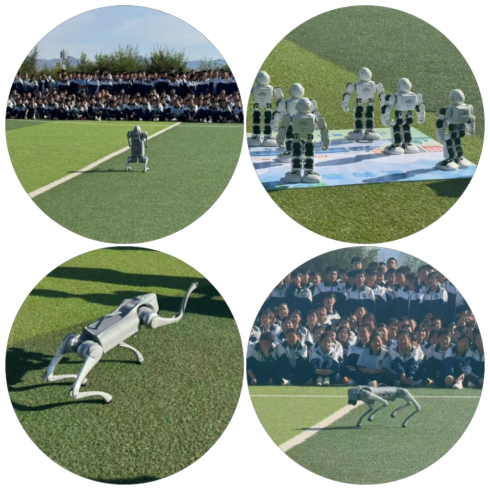 活动中,机器人与机器狗表演成为最大亮点。随着指令响起,机器人展现出灵活动作,机器狗则以精准的反应和灵动姿态完成系列表演,每一个精彩瞬间都引得现场师生阵阵欢呼与掌声。科普大篷车化身“移动科技馆”,将抽象的科技原理转化为生动的视觉盛宴,让学生们直观感受现代科技的神奇魅力。