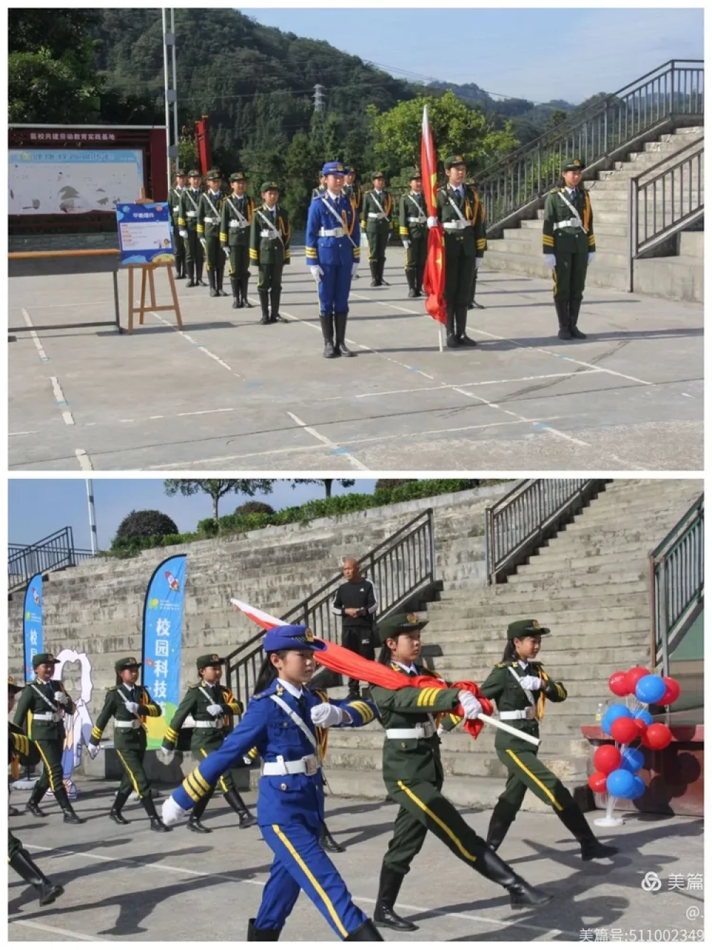 清晨的阳光洒满校园,全体师生整齐列队,目光望向旗杆。伴随着雄壮的《义勇军进行曲》,五星红旗缓缓升起,大家挺直腰板、行注目礼,心中满是崇敬与自豪。升旗仪式正式开始!护旗手迈着整齐的步伐走到旗杆下,将国旗牢牢固定。当激昂的旋律响起,红旗迎着风向上攀升,操场上安静极了,只有歌声与国旗飘动的声音,这一刻格外庄重。
